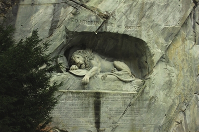 在这座古老的城市,随处可见历史的痕迹,而历史带来的纪念也时刻留在卢塞恩人民心中。老城区东北面外侧的狮子纪念碑,是为纪念1792年法国大革命时期,为保护法国国王路易十六而失去生命的786名瑞士雇佣军(其中大部分是卢塞恩人)而建,在当时那个动荡的年代,瑞士雇佣军的忠诚可歌可泣。这只横卧在岩壁洞中的狮子,腹部一侧被利剑刺中,奄奄一息,被马克吐温形容是“世界上最悲壮和感人的雕像”。位于它前方的岩壁上,用文字刻着这样一个故事。看着这只“卢塞恩之狮”濒临死亡的痛苦表情,严肃的气氛不知不觉在我们中间蔓延开来。随后我们攀爬了城市另一侧的老城墙,虽然那天不能登上城墙,但在其脚下静静观望,也有一种静穆感,血雨腥风的年代早已过去,老城墙依然屹立,深情地俯瞰脚下越来越繁荣的卢塞恩。