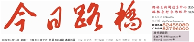 2012年4月16日 星期一 壬辰年三月廿六 总第1304期 本期8版 主编 伍文杰 责任编辑 王君君 版式 梁怡 校对 金珍娇 联系电话 82446676 电子版http://www.1qnews.cn新闻热线广告热线 82455080 82796000