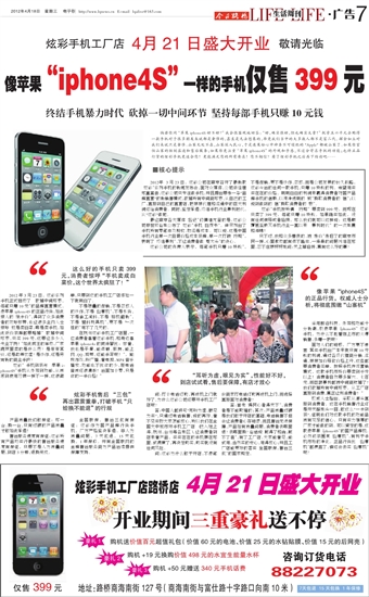 像苹果“iphone4S”一样的手机仅售399元