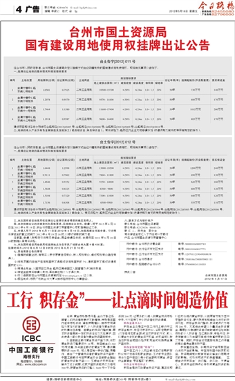 台州市国土资源局国有建设用地使用权挂牌出让公告