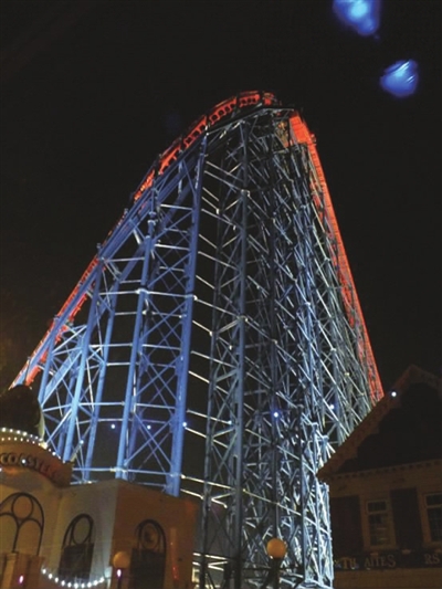 我站在TheBigOne下面,犹豫着到底坐不坐,后来一想,如果我想尝试的东西没有去尝试,那以后一定会后悔,就冲着它是全世界最大的过山车,怎么也应该试下!于是我鼓足了勇气,过了一把瘾。