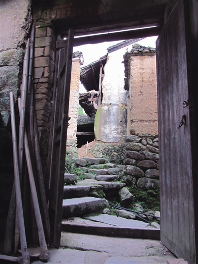 拾级而上走进畲家,泥黄色的砖墙衬着黑色的房顶,二楼的木栏杆上垂挂着正在晾晒的菜叶。畲语中称房屋为“寮”,一般为木结构泥墙茅草顶,随着时代的变迁,我们见到的大多房顶为瓦片。房屋大多建造在山坡向阳避风有水源的地方,虽无系统上的风水理论,但他们的宅门和灶门朝向有一定的规制。