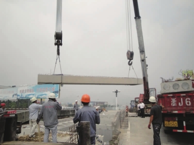 记者从公路段了解到,迎宾桥实施的吊装超长梁板工程预示施工时间为一天。此次吊装的梁板共有40片,其中20米长的梁板8片、13米长的梁板16片和8米长的梁板16片。迎宾桥梁板吊装完成后,拓宽部分桥面工程预计将于本月底完成。