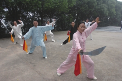 被大家称为班长的蔡师傅学习太极已有4年,每天6时不到,他都会准时到达场地。蔡师傅说,现在他们活动的场所是爱好太极的学员们一起出资重建的。二十四式、四十二式、五十六式,除了固定的拳法,学员们还可以练练剑。除了下雨天,这个场所从未冷清过。