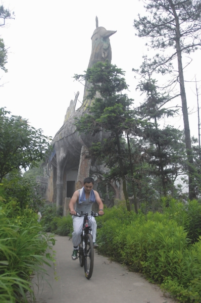 “今天第一次骑,以前都是跑步来山上锻炼。无论是开车还是上班,总坐着对身体不好,就想换个生活方式,现在上班我都骑自行车去,低碳环保。”吴先生笑着说。在吴先生的自行车上,除了闪着灯的对讲机外,还绑着一个来不及灌水的空水瓶。