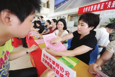 日前,区妇联组织司法系统的法官、律师等在人流密集的市客运南站开展“关爱妇女儿童维权”大行动,为过往市民和顾客提供法律法规知识及维权服务。图为律师给市民解答法律知识。