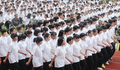 8月29日上午,路桥职教中心举行军训汇演。据悉,该校开展了为期一周的军训,全校25个班级的1100多名高一新生,在预备役教官的指导下进行起步与立停、跑步与立停、停止间转法以及内务、行为规范等训练,全面提高学生整体素质。 本报记者 王保初 摄