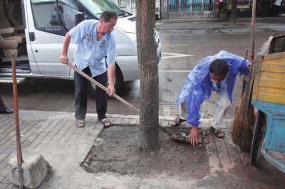 曹文武了解情况后,趁午饭的时间段专门来到该地点查看,果真如张女士所言,一袋汤汤水水还在渗漏的垃圾被扔在了行道树坑里。曹文武走进店里,跟店主交涉:“垃圾桶就在前面十几米远的地方,现在扔在行道树坑里,既不好看又招惹蚊蝇,而且影响城市美观。”店主表示马上就把垃圾扔到垃圾桶里。因为是第一次,店主承认错误的态度也比较好,曹文武只对店主进行教育。