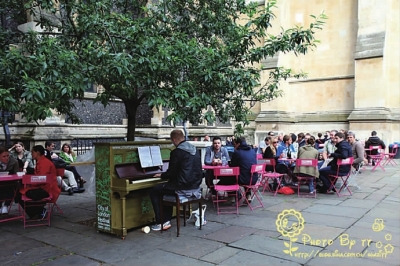 市场的外面是Southwark Cathedral,这是伦敦最老的哥特式教堂。人们悠闲地坐着喝喝饮料聊聊天。在奥运会前为了迎接这一体坛盛事,伦敦的不同街区还放置了钢琴,供大家娱乐。