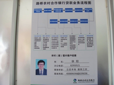 “这种挂牌方式不但能让客户经理提高业务素养,增强业务能力,拓宽与村民的接触面,服务具有针对性,提高服务农民的水平,同时为他们全面了解村情民意提供一个良好的平台。”路桥农村合作银行零售业务部总经理林佳说,“也有助于客户经理更好地融入村民的生活,更好地为农村提供金融服务,切实解决农民贷款难、农村经济发展融资难问题。”