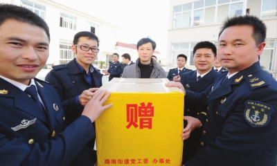 11月19日下午,路南街道干部为即将退伍的老战士们赠送纪念品,感谢他们为国防事业和地方经济建设作出贡献。当日,该街道武装部工作人员带着纪念品专程来到驻地某部修理厂,看望即将离开军营奔赴新岗位的老战士们。