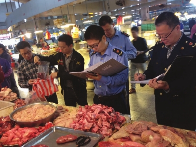日前,城区工商所联合区工商分局食监科对辖区内农贸市场内的猪肉、猪肝、豆制品等进行了定量抽检,共抽检了13个批次,检测项目主要有重金属指标、防腐剂指标、菌落指数等,让市民吃得放心。