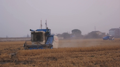 1月13日,两台“铁牛”来到了杨昌林的晚稻田里,经过4天的忙碌,80亩晚稻终于完成了收割。