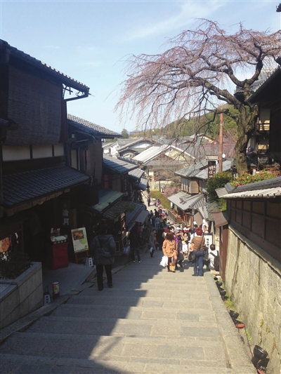 从京都车站出来已经是晚上9时,京都塔散发着的光像是在为路人指引方向。一路上几乎只有微弱的路灯相伴,偶尔有行人和车辆经过,后来才知道日本的商店大多会在晚上8时就停止营业,所以路上十分安静。初来乍到难免陌生,在小路间一时没找到旅店,索性拿出事先记好的地址找了路人问路。路人虽然完全不会英语,但很认真地在手机上找到了旅店的位置,将我带到了目的地,并确认安全后才离开,令我感动不已。