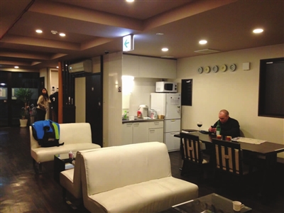旅店前台的小哥热情地接待了我,操着一口流利的英语为我一一介绍旅店的设施和周围的环境。日本的房间着实小得惊人,进门后就没有太多可以移动的空间,后来住的高级酒店房间稍微大一些,但是相比国内同等酒店房间还是小得多。但别看空间很小,即使是胶囊旅店的房间里也是五脏俱全的,吹风机、折叠桌巧妙地放置很节约空间,而除了设施齐全以外,品质也是一流的,多功能的花洒,全自动坐便器,直接增加了入住的舒适度。旅店还有公用的厨房和客厅,游客可以免费使用冰箱微波炉,翻阅提供的各种英文和中文的日本旅游攻略书籍。热一杯牛奶靠在沙发上研究第二天的攻略,颇有身处家中的惬意感。在这里,要是想多交朋友,可以和来自不同国家的旅客交流,也是件乐事儿。后来住过那种价格高一些的酒店,酒店里还有天然温泉,逛累了一天后泡个温泉,可以缓解一身疲惫。