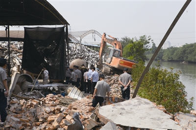 6月5日,城管执法大队会同峰江街道、国土资源分局、规划处等单位,拆除峰江街道筻李王村南官河沿线的违法建筑,共计8600平方米。据悉,这项行动属于南官河综合整治的一部分,将持续进行下去。