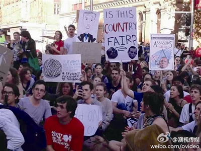 近日,艾伯特政府对于移民、教育和公民福利推出的政策令民众很不满,这两个月来悉尼已经有过3次大游行,学生和中产阶级走上街头,对政府削减大学资助导致学费上涨和福利水平下降的问题进行了示威游行。记得上个月的一个中午,煮着挂面的我被楼下声势浩大的游行团队呐喊声吸引到阳台,警车为长长的队伍开道,近千名悉尼科技大学的学生、教职工举着横幅喊着口号向最繁华的George Street(乔治街)前行。见如此阵势,着实让人惊呆了,我凭着并不优秀的英语听力竭力辨识他们的口号。10余分钟后,口号声渐弱,游行队伍从我的视线里消失。我回到屋里,惊讶地发现一锅挂面早已煮得一团糊,看来我也应该走上街头为我的挂面向艾伯特讨个公道。