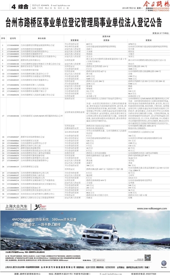 台州市路桥区事业单位登记管理局事业单位法人登记公告