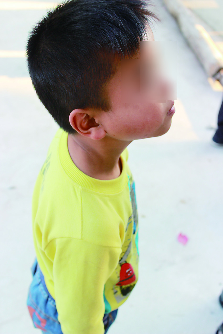上个月,林友才的儿子小宇鑫右脸有些“肿”,一家人原本以为孩子只是得了“种豆荚”(林友才也解释不清,只道是当地说法,据说小孩子得这种病四五天后,症状就会自动消去),所以未放在心上。但没过几天,这块隆起于皮肤表面的“肿块”越来越大,小宇鑫吃饭咀嚼时总喊痛,家人这才觉得不对劲,立即送孩子去了医院。