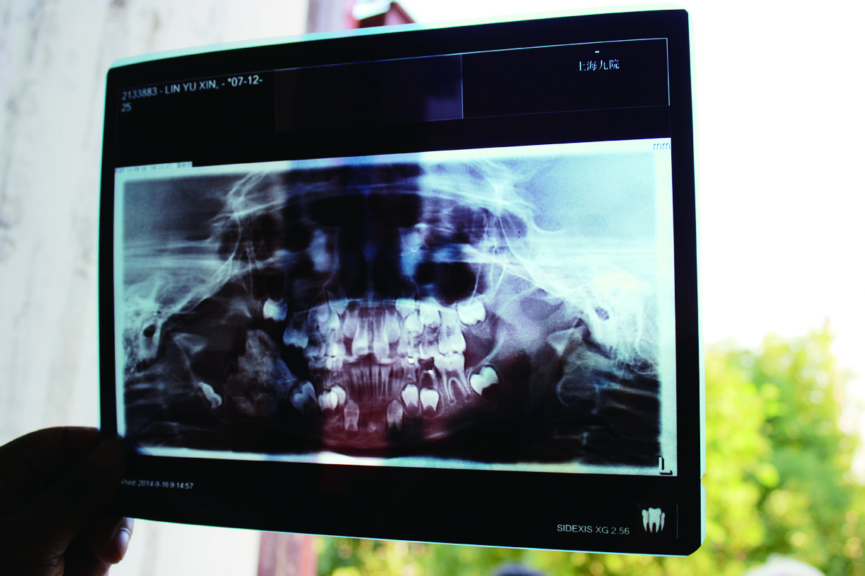 就在我们走访小宇鑫后的第二天,有义工帮忙联系到台州市博爱医院,并带小宇鑫去作了检查。该院的肿瘤科、口腔科等科室的医生专门为他进行会诊。