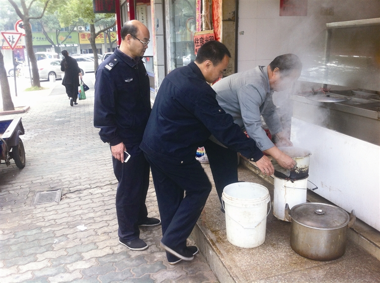 | 11月28日,执法人员正在清理占道经营。本报通讯员 曾 杰 摄 |