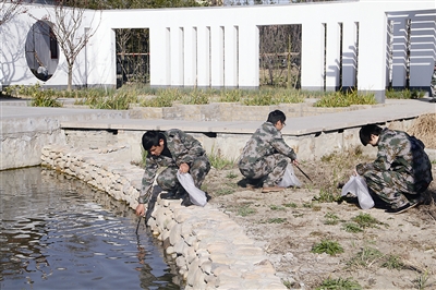 12月17日下午,新桥镇武装部组织民兵应急分队在前七份内河开展河面清理、垃圾清洁等活动。只见10多名队员身着迷彩服,手持铁钳、垃圾袋等,分组清理了河面的漂浮垃圾以及河岸上的生活垃圾。