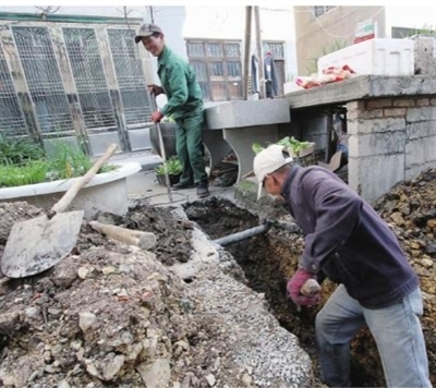 12月23日上午,施工人员正在横街镇下云村一居民小区抓紧对生活污水截污纳管进行施工,确保年前完成所有改造工作。据了解,今年10月以来,该镇共投入2000多万元,铺设污水管网达25000米,对5个村(居)1400多户的生活污水进行集中纳管处理,有效解决了集镇范围污水直排问题。 本报通讯员 王国洋 摄