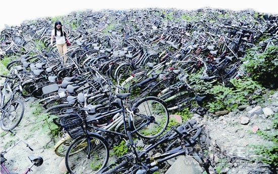 当然,“自行车坟场”不是个别现象。大学里,为了学习和生活方便,不少大学生都购有自行车。在学生数以万计的大学校园里,自行车数量自然不少。或由于自行车破旧损坏,或由于毕业离校,有些大学生就丢弃了自己的自行车。于是,废旧自行车越积越多,形成了一个个让人触目惊心的“自行车坟场”。