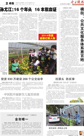 “目前血库里的各种血型都比较紧张。”孙尤江告诉记者,自2014年年中开始,他从之前的每月献一次血变成每半个月献一次血。“每个人的身体都有造血功能,献血不会影响身体健康,更不会减寿,在合理的时间范围内献血,反而会促进血液系统新陈代谢。”在当好无偿献血排头兵的同时,他总不忘自己还是个无偿献血宣传员。作为驾驶员,他的车子开到哪,总是把无偿献血宣传到哪。“第一次献血是由单位组织的,而在此之后,我见过太多急需血液救命的病人,如果能帮上他们,在能力范围之内,我会尽自己最大的努力。”长期在医院工作的孙尤江深有感触。