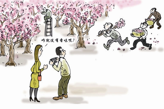 近日,网上曝出多张各地游人争相观看樱花、桃花的照片,那摩肩接踵、人山人海的架势,不得不让笔者佩服这些敢往景区扎堆的游人们:你们到底是在看花,还是在看人。