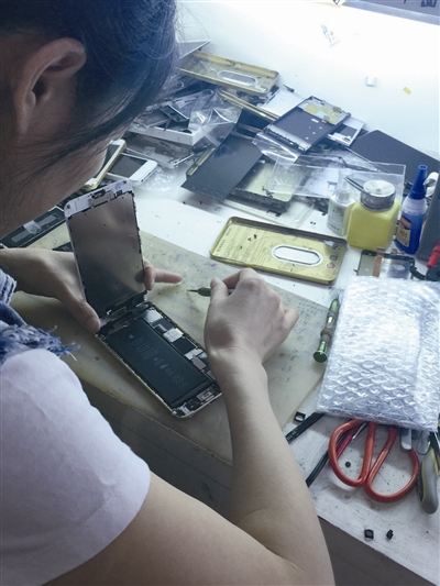 可是随后,刘肖雅禁不住低价的诱惑,换上了店家称“内屏原装,外屏非原装”的500元屏幕。不到半小时,刘肖雅的手机焕然一新。“跟朋友的手机一对比,我发现屏幕的颜色不一样。”事后,她有点后悔。