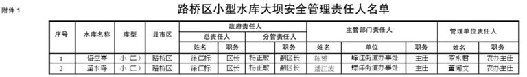 附件:1.路桥区小型水库大坝安全管理责任人名单