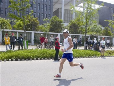 4月25日,2015宁波山地马拉松赛在江北慈城鸣枪开跑。来自国内外的3500名运动员和马拉松爱好者参加了全程组、半程组、体验组和团队组的比赛。我区业余跑步爱好者张翔参与了其中600人参赛的全程组比赛,取得了枪声排名62名、净计时排名63名的好成绩。此次全程山地马拉松总距离42.195千米,途中翻越3座山,总爬升1125米,属于超级马拉松。本报记者 王 斌 摄