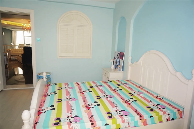 女儿的房间是清新的地中海风格,夫妻的卧室是欧美古典风格,而客厅则颇具后现代简欧风格。细细欣赏完每个房间后,不得不让人感慨,她家的装潢非常讲究细节布局。比如在客厅进入房间的门厅处,余音洁特地设计了两根欧式风格的柱子,如果没有这两旁的柱子,门厅看上去就会单调不少;又如女儿房间清爽简单的推门设计,应该是多数女孩心仪的。