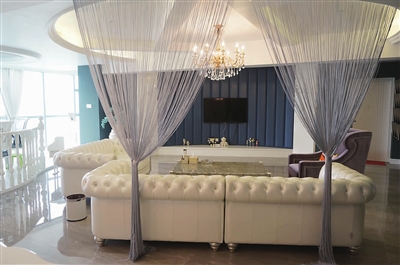 家中摆放棋牌桌的地方,余音洁本来是想放一架三角钢琴,而这一间隔客厅的玄关扶手是当初她身体不适没能监管到的。虽然是这么一个小细节,但她还是觉得家中的装修并不完美。其实,在外人看来,他们的家已经算是顶级配置。例如,敞开式的厨房设计、内嵌式的冰箱、HELLO KITTY的麻将,无不吸引着客人们的眼球。