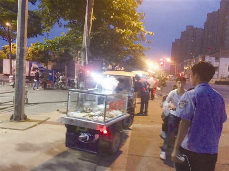 | 高考期间的晚上,执法人员加强流动摊、夜排档的管理。