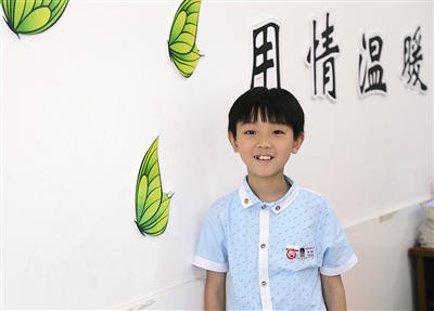 当朱飞扬从班主任身后忽然闪出时,记者看到了一张很灵气的脸庞,一双明亮的双眸闪着一丝紧张和好奇。“你别看他个子小,脑袋瓜灵光着,里面装了好多想法。”路桥实验小学五(3)班班主任郑瑶韵笑着介绍他。