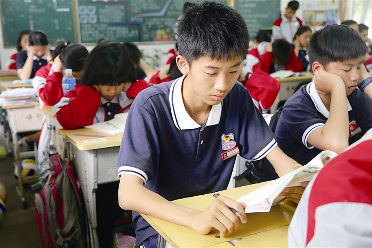 这份沉稳,在峰江中学七(5)班班主任林怡看来,“把班级里一些事情交给他打理,很放心”。