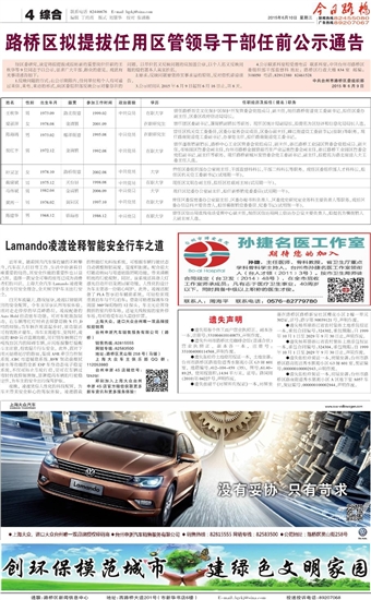 路桥区拟提拔任用区管领导干部任前公示通告