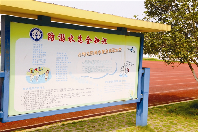随后,陈建华带记者去操场及校门口逛了一圈,他指着那些以校园安全为主题的宣传栏说:“我们专门整理了防溺水安全、运动安全、消防安全、用电安全、交通安全等方面的知识,在学校人气最旺的场所加以展示,希望学生们平时多学学记记,切实增强自身的安全防范能力。”