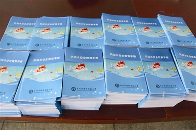 5月下旬时,该校新运来好几箱蓝色小册子。“这是我们专门编写的《防溺水安全教育手册》,里面涵盖了各种防溺水安全常识、游泳遇险自救的方法,以及各地学生溺水事件的案例等内容。相信大家认真阅读该手册,一定会有所收获的。”陈建华介绍道。据了解,这本《防溺水安全教育手册》,该校师生人手一份。
