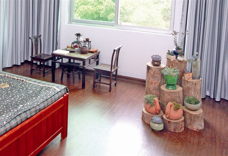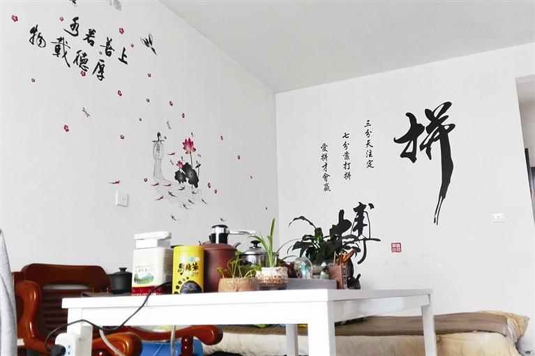 张雪是蓬街派出所的女民警,平时大多时间都住在单位,她一直很希望把宿舍装扮得更温馨些。宿舍文化建设中,张雪围绕所里民警一起商定的“田园风格”格调开展“家文化”建设,休息天去逛市场或是上淘宝,买来墙贴、壁挂、花木、家具等,然后自己动手DIY。