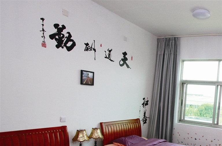 横街派出所的宿舍文化总体是“彩虹之家”,7个民警的房间有7种各不相同的颜色。该所副所长周国通喜欢象征优雅、宁静、祥和的紫色,他自己抽空逛逛淘宝,买来各种紫色的图画和材料,把宿舍装扮得很温馨、很美观。