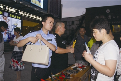 连日来,公安分局组织宣讲小分队深入村居、企业、市场等地开展防范宣传活动。图为宣讲小分队民警在东方华联门口摆“夜市”开展宣传。本报通讯员 蒋友亲 摄