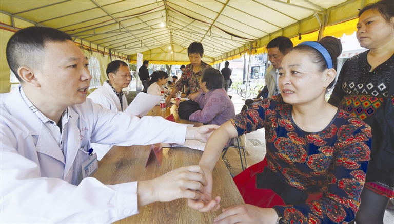 日前,民宗局组织台州市博爱医院医务工作者来到街心公园,开展“宗教文化惠民金秋送健康”活动,为过往行人提供一系列医疗义诊服务。