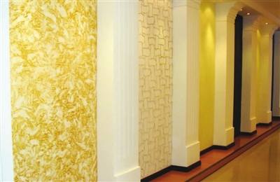 客厅是一般主人的主要活动空间,卖家推荐选用明快大方的色彩,材质应选用高档壁纸。在路桥装饰城中,一家从事整体软装的店家表示,决定壁纸的风格时,应考虑到地面材料、家具、饰品和灯光的同步设计。除尺寸等特殊效果外,一般来说,壁纸颜色越纯正、铺贴效果越持久,同时也越经典,不易产生视觉疲劳。对于这一点,徐女士深信不疑,此前在一样板房参观时也看到,客厅墙面选用淡咖色略有凹凸感的墙纸,与天然墙壁毫无违和感,完全贴合整体装修风格。