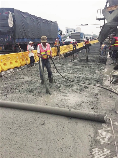 如何协调施工与通行是关键,项目负责人王宇告诉记者:“为了不影响该路段正常通行,104国道与迎宾大道交叉口部分的破碎板修复将采用硬化速度快的高性能混凝土,夜间施工后加盖路基板,第二天即可正常通车,计划8日晚上开始小部分试行,成功后进行大范围修复。”