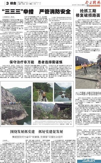 一、围绕发展抓党建。医院党委紧紧围绕医院发展开展各种活动,发挥党组织对医院发展的帮助、促进、监督、协调作用。一是积极谏言献策。医院党委通过党员、员工座谈会、个别谈心等形式,深入了解影响医院凝聚力方面的一些问题,形成书面报告,并逐一分析原因,提出对策意见。近年来,医院采纳党委建议共500余条,其中来自医疗一线党员的建议占到85%。二是开展“1+1”特殊服务活动。根据各个党支部对应的相关科室的工作要求和目标任务,按照“一个支部一项特色、一个党员做一件实事”要求,开展“1+1”特殊服务活动。如门诊支部打造“三心诊疗”(病人在心、病情在心、将心比心)服务品牌;住院支部突出“五个到位”(技术创新到位、流程规范到位、服务贴心到位、环境温馨到位、随访病人到位),有效提升了医院的服务质量。三是把党员培养成业务骨干,把业务骨干发展成党员。