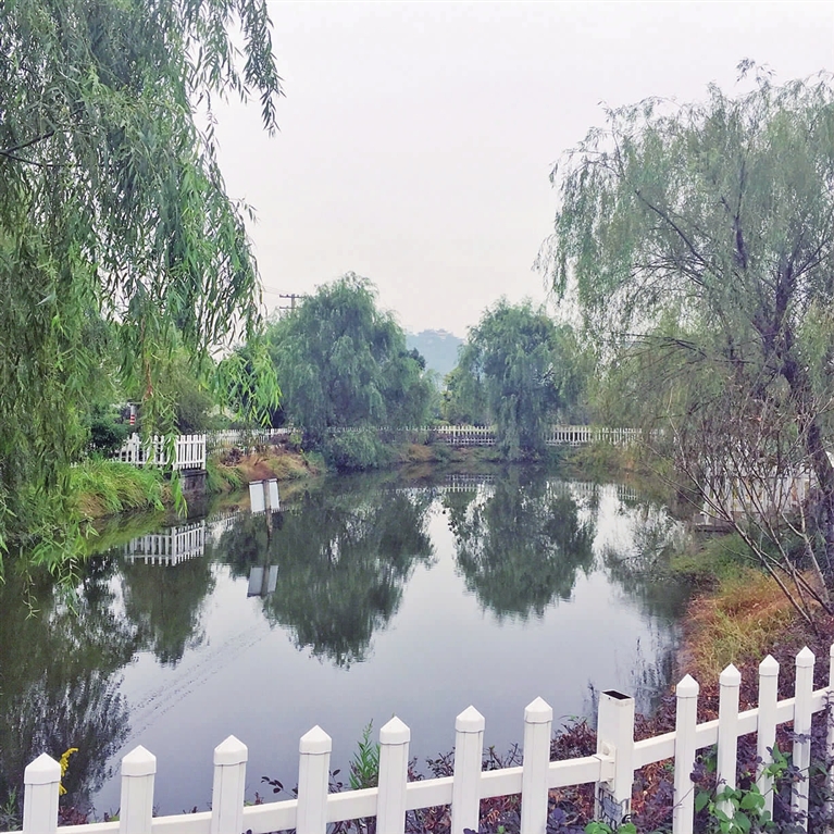 若仔细观察,便能发现份水村的田园风光中并不乏文化底蕴。走到村口的立石边,“份水”两个俊秀的大字镌刻其上,环顾村内建筑的墙壁,几幅颇有意境的山水画吸引着过路行人驻足欣赏。一路走,一路看,来到一块已经挖好河道的绿地旁,王鸿明介绍起了份水村正在全力打造的休闲农场。“农场建成后,占地200亩左右,市民可以来这里采摘蔬果、钓鱼、烧烤、聚餐…”他带着记者在农场范围内走了一圈,依次介绍了按照不同娱乐功能划分的区块。王鸿明表示,这块基地原本的风景就比较别致,多条天然的河道环绕其中,形成了好几个“湖心小岛”,等建成后,必然会为份水村民的生活多添一份色彩。