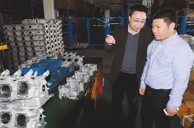11月25日,我区召开机电行业人才科技交流洽谈会期间,高校院所专家教授走访了浙江华和叉车有限公司,并和该公司总经理探讨机电行业的发展前景。 本报记者 王 挺 摄